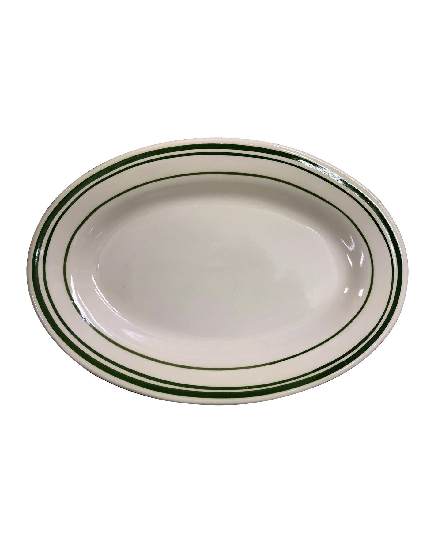 グリーンのラインが特徴的、歪みやラインのズレも可愛いお皿です。