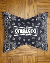 肌触りのいいコットン素材のバンダナにビッグロゴを両面入れてあります。