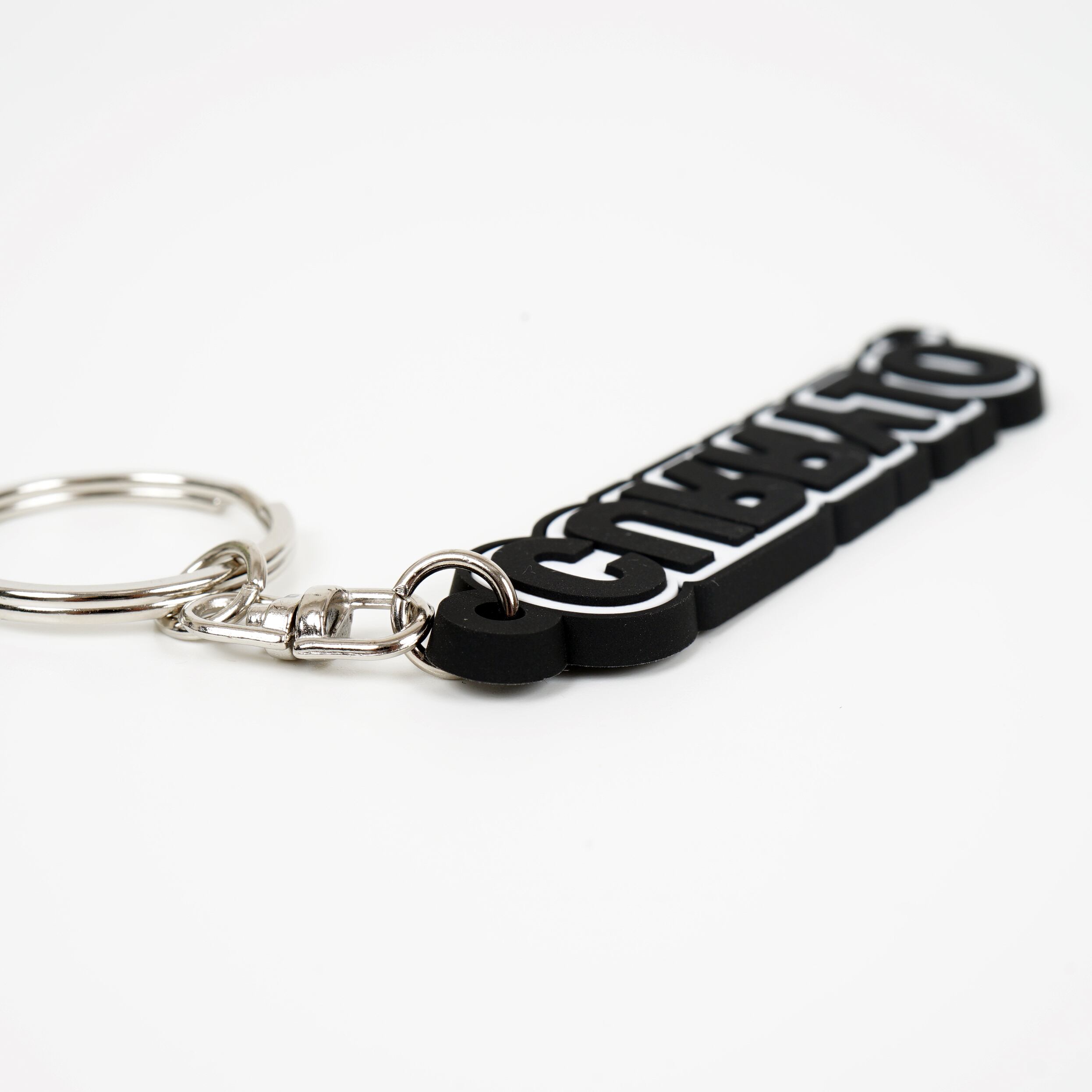 ロゴが立体感のあるオリジナルのラバーキーホルダーになります。